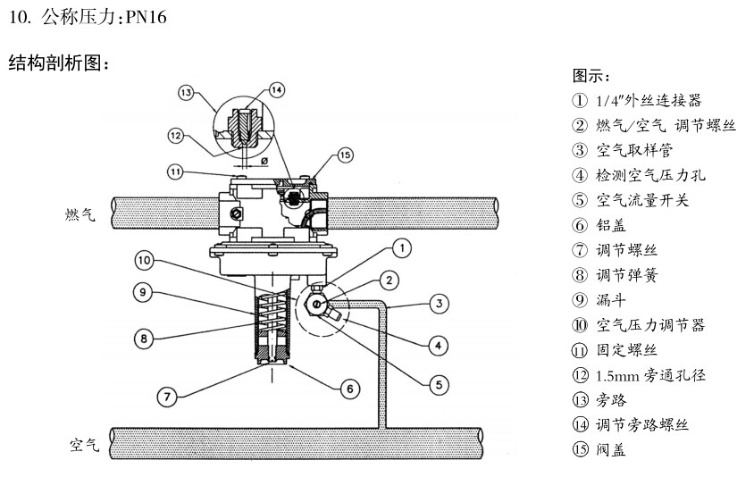 9. 适用介质:煤气、天然气、液化石油气等无腐蚀性气体