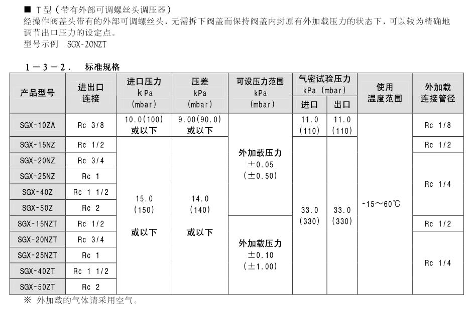 型号有:SGX-10ZA SGX-15NZ  SGX-20NZ SGX-25NZ  SGX-40Z SGX-50Z