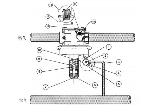 (在压力表上可读出)。这样整个设定结束。当空气压力在0- 400mbar变化时,燃气压力在0-20mbar之间。